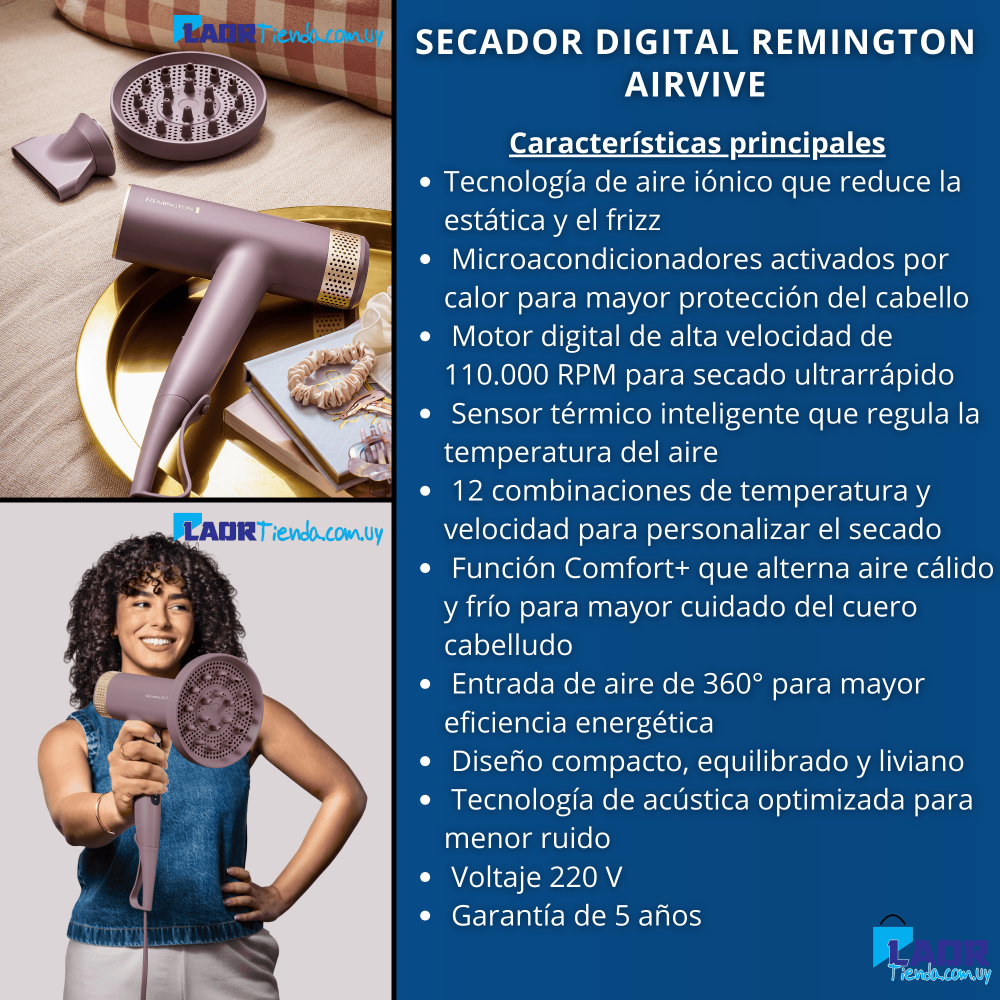 Tecnología de aire iónico que elimina la estática y deja tu cabello más suave y brillante.