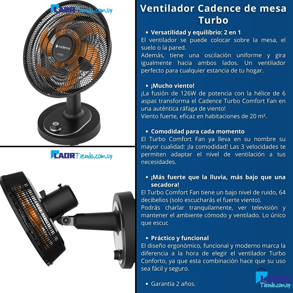 Bonito diseño, montaje rápido y gran potencia, ha llegado tu compañero de verano. ¡El ventilador Cadence Turbo Comfort viene con todo! Con una potencia de 126W y versatilidad de instalación 2 en 1: en el suelo o en la pared, hará un lugar más confortable.
